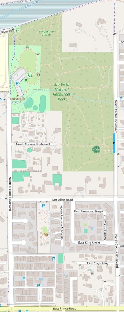 Every Thursday during Lent, we will contemplatively walk the labyrinth at the Rio Vista Natural Resources Park located at 3974 N Tucson Blvd, Tucson, AZ 85716. The closest parking to the labyrinth is on the west shoulder of Cactus Blvd a short distance north of Allen Rd, marked in blue on the map.